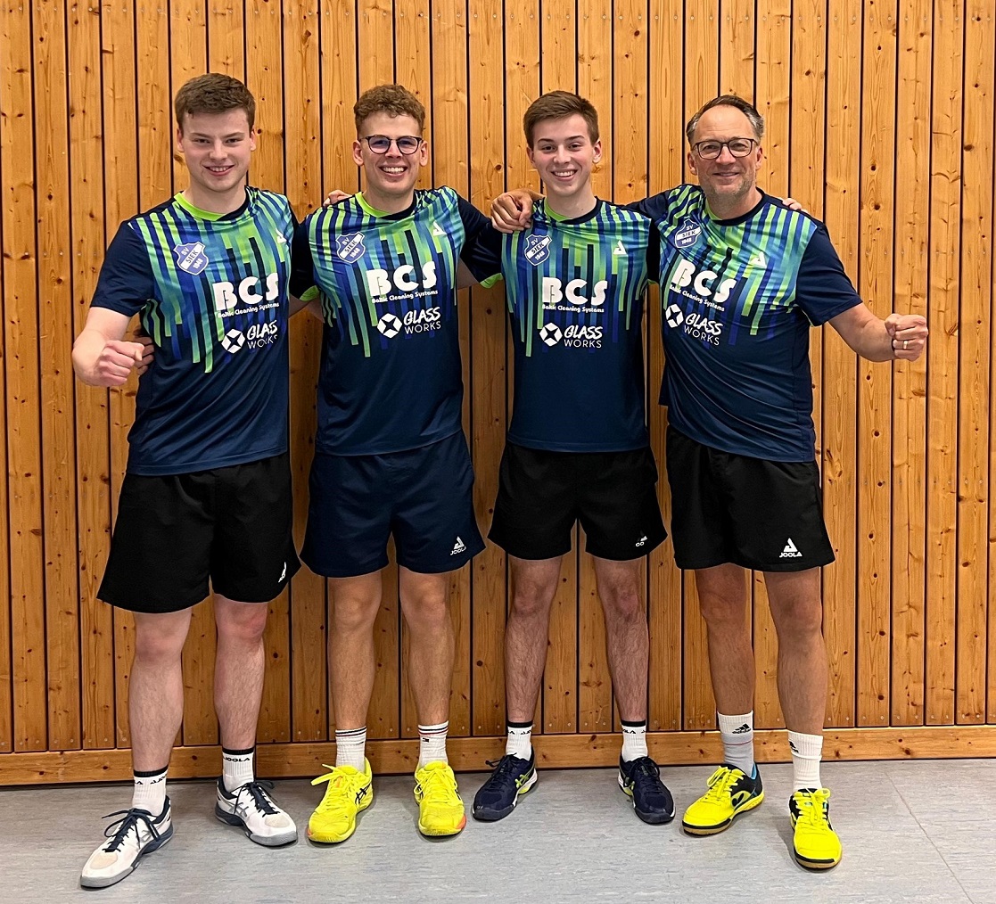 Nach dem deutlichen 7:1 Auswärtserfolg beim Krummesser SV 2 hat unsere 5. Herren vorzeitig die Meisterschaft in der 2. Bezirksliga Süd perfekt gemacht und steigt in die 1. Bezirksliga auf. Torsten Neumann und Lukas Vorwerk sowie Nikolai Voß mit Max Vorwerk sorgten für ein 2:0 nach den Doppeln. Niko 2, Torsten, Lukas und Max mit je einem Einzelsieg sicherten das schnelle 7:1 für die Fünfte, die jetzt 26:2 Punkte aufweist. Zum Aufsteigerteam gehörten des weiteren auch noch Maarten Maurer und Arthur Czapp.