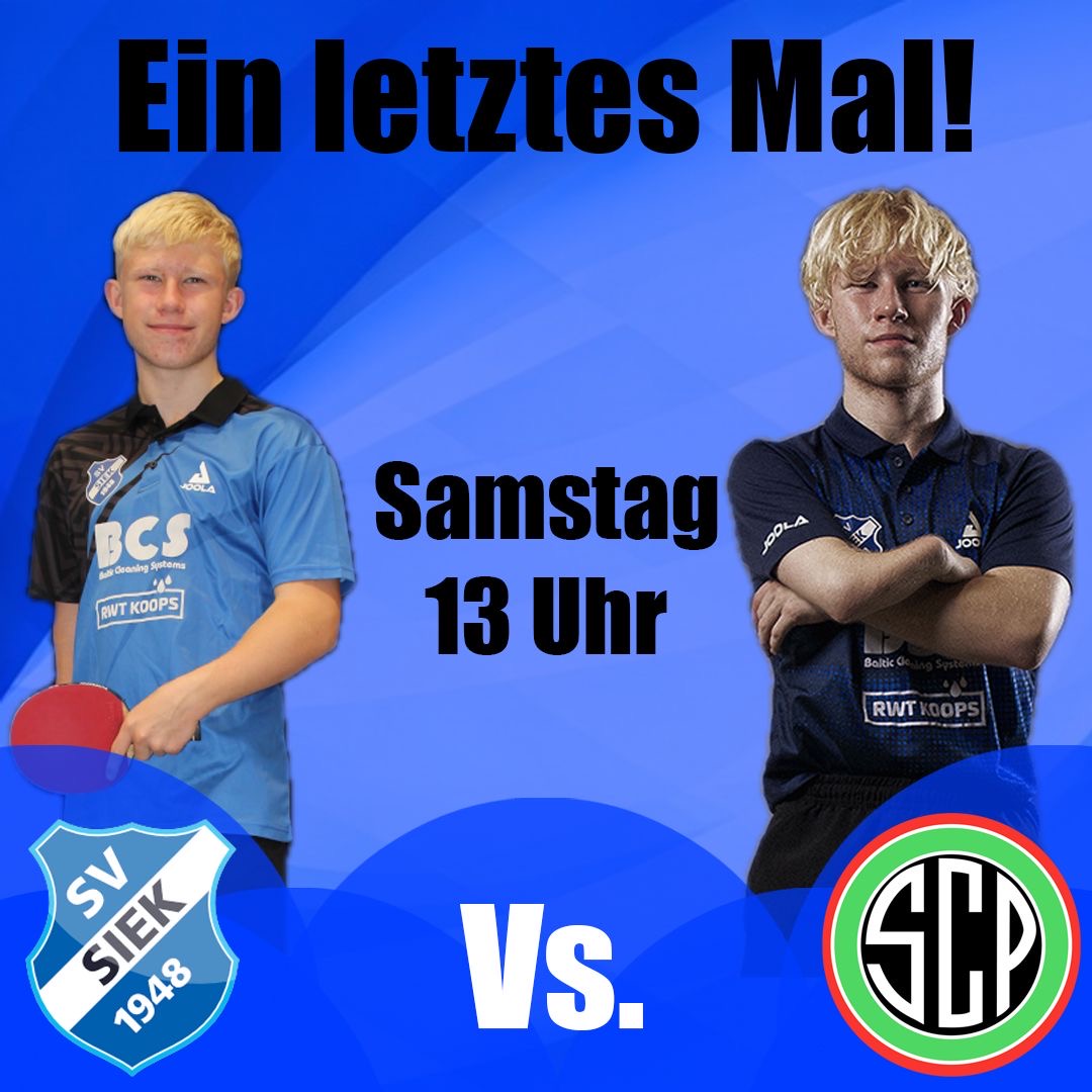 Seinen letzten Auftritt nach vier Jahren beim SV Siek wird vorerst Mio Wagner haben, den es eine Liga höher in der nächsten Saison ziehen wird. Über seine vielen Erfolgen ist ja schon ausreichend berichtet worden, ebenso wie seine permanente Leistungssteigerung, beginnend bei uns in der Oberliga unten bis jetzt zuletzt erfolgreich in der Regionalliga oben. Zusammen mit Daniel Cords, Alexander Uhing und Laurin Struß will Mio alles versuchen gegen die starken Gäste zu bestehen.