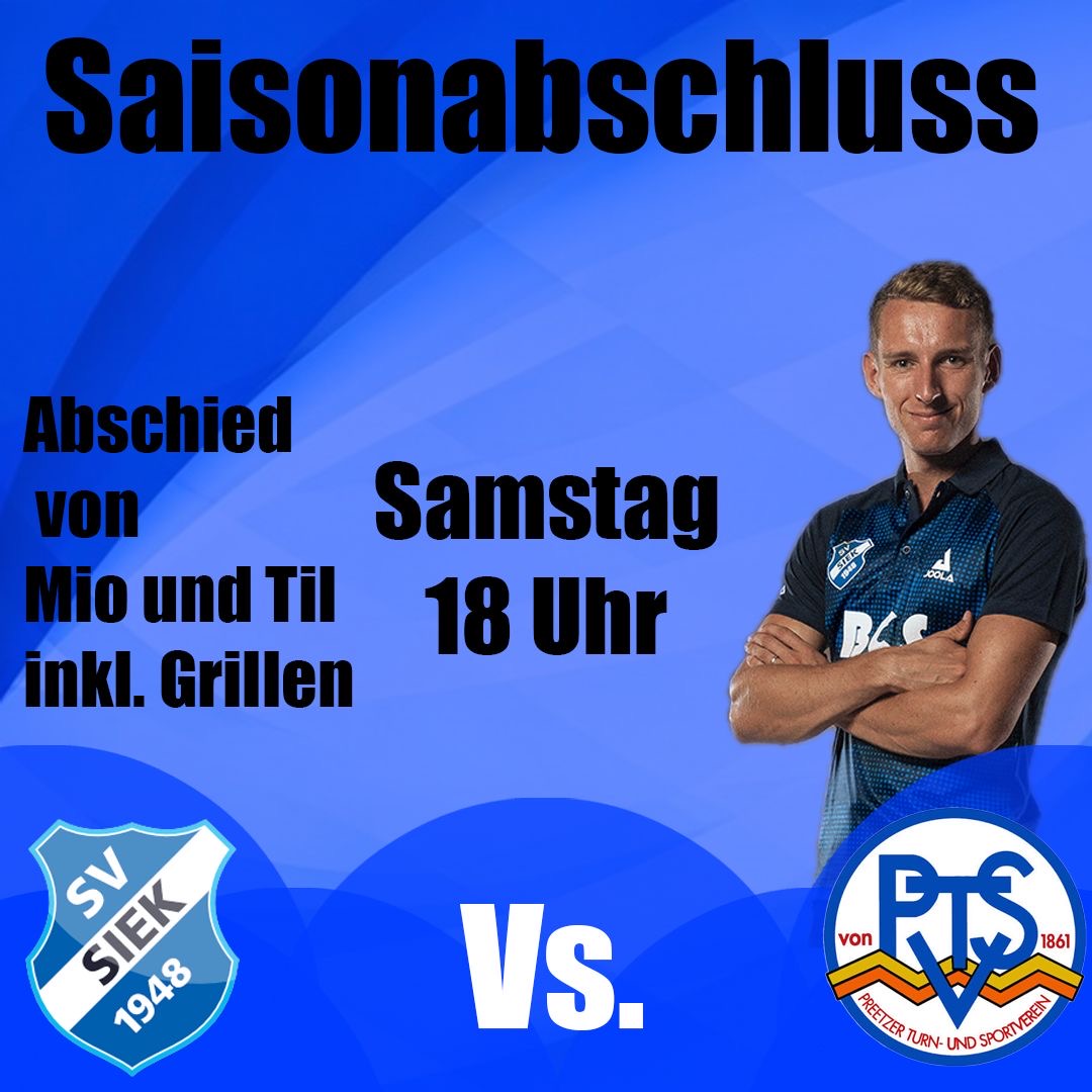 Ebenfalls seinen letzten Auftritt im Sieker Trikot wird Til Puhlmann am Samstag um 18.00 Uhr haben im Spiel gegen den Preetzer TSV. Til wird es wieder in Richtung Heimat ziehen. Siek´s 2. Herren ist mit 14 Pluspunkten auf Platz 5 der aktuellen Tabelle der Oberliga Nord-Ost und dürfte aller Sorgen ledig sein, außer es passieren einige absurde Ergebnisse am letzten Spielwochenende. Die 2. Herren will sich aber auch möglichst mit einem Heimsieg aus der Saison verabschieden.
