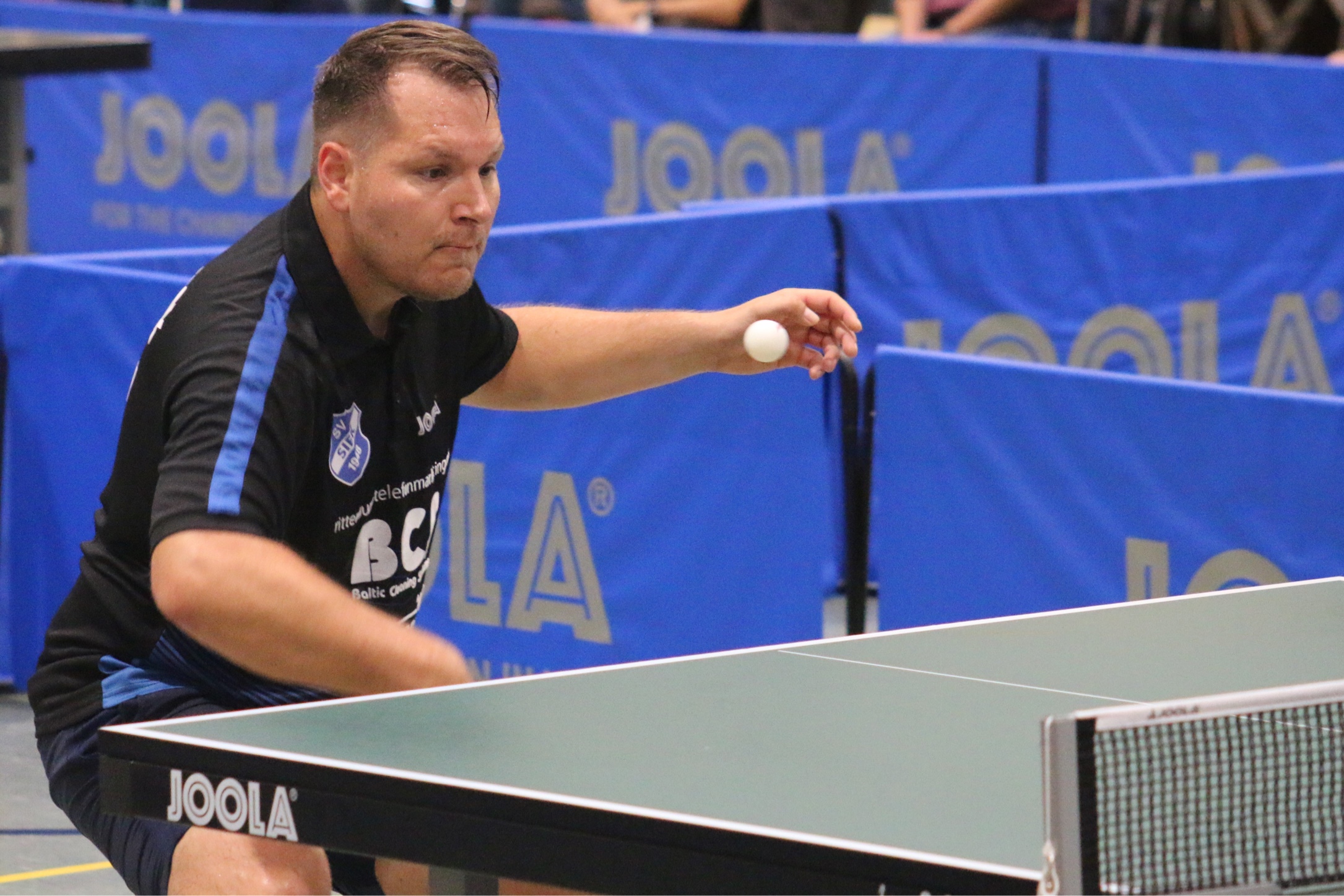 Jonah Wüpper begann an Position 3 stark und dominierte seinen Gegner Jörg Milferstädt zunächst in den ersten beiden Sätzen deutlich. Dieser wiederum konterte dann ebenso mit zwei glatten Durchgängen. Mit einem spektakulären letzten Ballwechsel zum 11:9 konnte Jonah den 3:2 Sieg dann doch noch auf seine Seite ziehen.